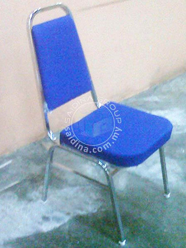 Kerusi Banquet dengan Ragka besi Chrome BErkilat yang menjadikannya menarik. Fabrik untuk span tempat duduk berwana biru, maroon dan hitam diperbuat dari kain yang berkualiti. Kerusi banquet ini adalah pebagai guna disebabkan kecantikan rekabentuk dan rangka besinya yang berkilat.