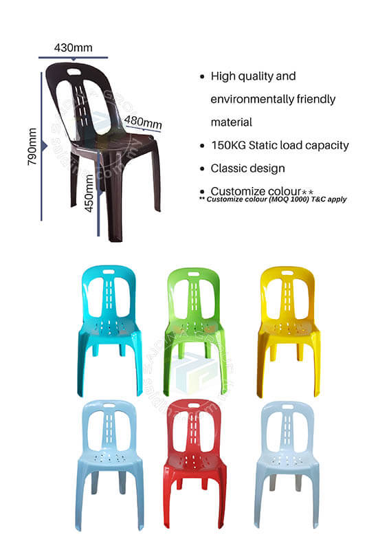 Kerusi Plastik dibuat dari bahan yang bermutu tinggi dengan kekuatan yang kukuh menjadikannya tahan lama. Pilihan Kualiti kerusi untuk tempahan yang banyak adalah penting kerana kerosakan akibat kualiti yang rendah adalah amat mengecewakan. Pastikan kerusi plastik anda berjenama SAIDINA GROUP.